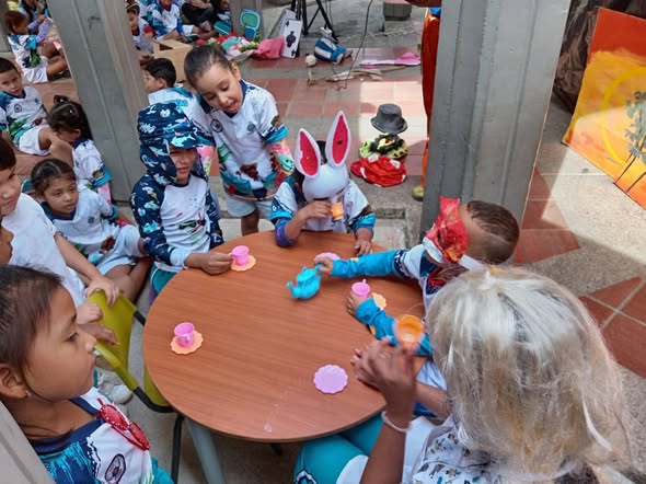 Dando continuidad al núcleo temático de los estudiantes de transición "soy caribe, soy alegría" se disfrutó de la narración de cuentos en voz alta dejado volar su imaginación en las playas de la ENSCR y de la maravillosa visita de la librería Monachito Libros quienes nos deleitaron con el gran cuento de Alicia en el país y las maravillas y el Principio. De esta manera se continúa fortaleciendo los hábitos lectores en los niños y niñas de transición de la ENSCR.